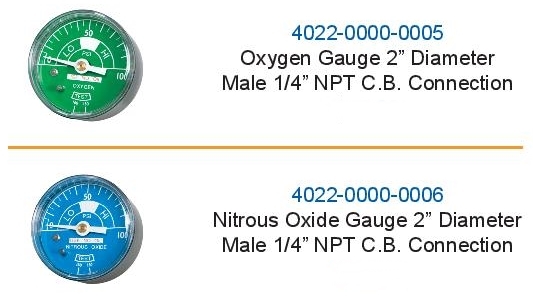 Belmed 4022-0000-0006 Nitrous Oxide Gauge 2" Diameter Male 1/4" NPT C.B. Connection (Manifold)