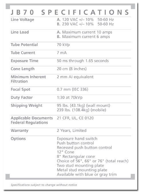 Progeny (Midmark) JB-70 Dental Intra-oral Imaging X-ray System - 34" Horizontal Arm *Refurbished